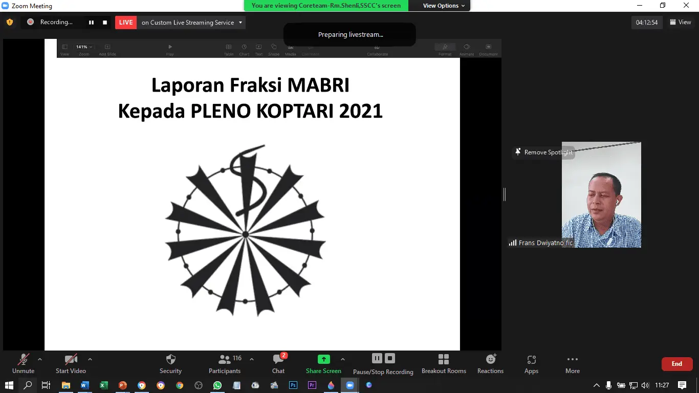 Sidang Pleno KOPTARI terakhir kali diadakan di masa pandemi, sehingga sidang diadakan secara virtual, melalui aplikasi zoom, tepatnya pada 24-27 September 2021 yang lalu. Dari pertemuan tersebut telah dirumuskan Komitmen dan Rekomendasi Sidang Pleno Koptari 2021, serta memilih Badan Pengurus untuk masing-masing Fraksi masa kepengurusan tahun 2024-2027.